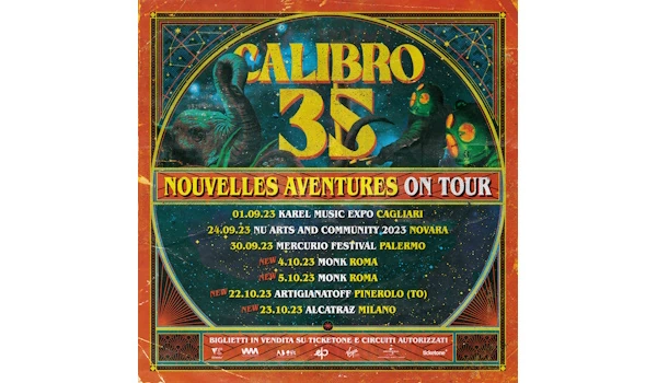 I CALIBRO 35 – la band formata da Tommaso Colliva, Fabio Rondanini, Massimo Martellotta ed Enrico Gabrielli – proseguono il loro viaggio live con NOUVELLES AVENTURES ON TOUR, con cui stanno presentando l’omonimo album uscito a maggio 2023, NOUVELLES AVENTURES. Il tour è partito questa estate nei migliori Festival italiani ed europei (tra cui il Primavera Sound di Barcellona, l’Off Festival di Cracovia e Paredes De Coura in Portogallo) ed è pronto ad arrivare a ROMA con una speciale doppia data al Monk, mercoledì 4 e giovedì 5 ottobre.