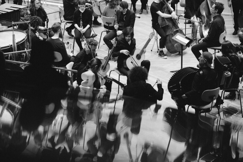 Stephen O’Malley, noto per i suoi contributi ai generi doom e drone metal, presenta “Gruidés”, un’opera che mescola elementi rock e punk. Christian Marclay, pionieristico nel suo uso del vinile come strumento, porta in scena “Constellation”, il risultato di un processo creativo che coinvolge registrazioni e rielaborazioni con gli orchestrali di ONCEIM. Infine, l’avanguardista francese Éliane Radigue propone “Occam Océan”, un’opera che traspone la sua esperienza nell’elettronica verso la musica strumentale attraverso pratiche affini alla tradizione orale.