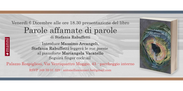 Il volume, dopo l’esordio a Milano nell’ambito di Bookcity, sarà presentato a Roma venerdì 6 dicembre. Introdotta dal linguista e critico letterario Massimo Arcangeli e accompagnata dalle note del pianoforte di Mariangela Vacatello, Stefania Rabuffetti leggerà alcune poesie estratte dalla raccolta