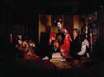 donne "anziane". Due sono vestite da Geisha, mentre le altre sono impegnate a
