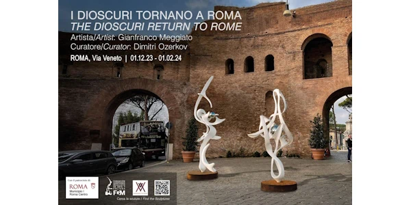 Castore e Polluce, i mitici Dioscuri, i “figli di Zeus” dei Greci, venerati anche dai Romani a partire dal V sec. a. C, sono i protagonisti di una grande esposizione dello scultore Gianfranco Meggiato, in programma dal 1° dicembre al 1° febbraio a Roma. Undici monumentali sculture saranno allestite in un luogo emblematico della Capitale, nel cuore del Municipio 1, in strada, a via Veneto e Porta Pinciana.