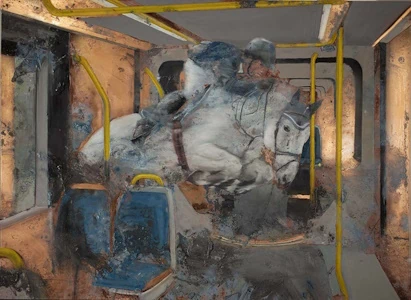 Il lavoro di Nicola Pucci si distingue per la capacità di catturare momenti di tensione, in cui elementi anacronistici e moderni si scontrano creando un effetto di sorpresa e meraviglia. Le sue tele, sei olio su tela e una selezione di stampe Fine Art su Dibond, sono testimonianze vivide di questo “clash”. Pucci gioca con il tempo e lo spazio, introducendo scie di movimento che tagliano la quiete del quotidiano, costringendo l’osservatore a una riflessione profonda sul proprio vivere.