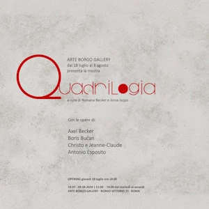 Dal 18 luglio all’8 agosto 2024, l’Arte Borgo Gallery di Roma sarà teatro di un’affascinante esposizione intitolata “Quadrilogia”. Curata da Romana Becker e Anna Isopo, la mostra si propone di esplorare l’individualità di quattro artisti di rilievo: Axel Becker, Boris Bućan, Christo e Jeanne-Claude, e Antonio Esposito. Attraverso un percorso espositivo che unisce linguaggi diversi e dinamiche insolite, “Quadrilogia” invita il pubblico a una riflessione razionale e a una contemplazione profonda delle opere esposte.