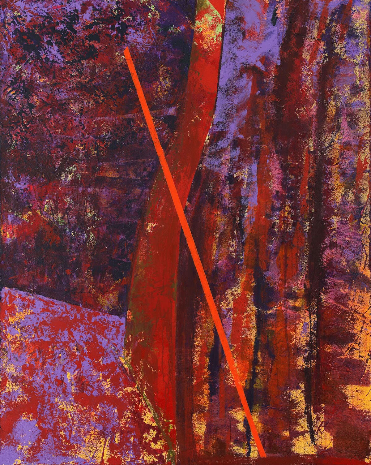 Maria Pacheco Cibils non è nuova all’esplorazione dell’interazione tra materia e forma. Le sue opere pittoriche si distinguono per la capacità di evidenziare tensioni e fragilità attraverso l’uso di colori simbolici come il viola, il rosso e i pigmenti terrestri che donano tridimensionalità alle composizioni. Il risultato è un’esperienza visiva e tattile che invita lo spettatore a confrontarsi con la natura imperfetta e transitoria delle cose.