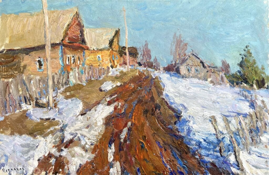 Oltre alla dimensione prettamente paesaggistica, il lavoro di Permiakov esplora un sentimento complesso e affascinante: lo spleen russo. Si tratta di quella particolare forma di nostalgia, vicina alla saudade portoghese o alla Sehnsucht tedesca, che nasce dal confronto con orizzonti infiniti e spazi che sembrano non avere fine. Nelle sue opere, questa sensazione si traduce in una luce vibrante che attraversa le composizioni, donando profondità allo sguardo e invitando l’osservatore a un rallentamento necessario. È un’introspezione che richiama atmosfere letterarie celebri, evocando quella sensibilità che si ritrova in opere come Lo Spleen di Pietroburgo.