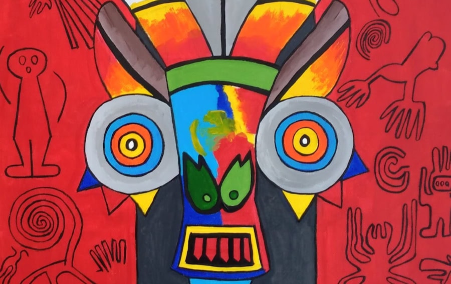 L’universo visivo creato dall’artista è un luogo di incontro e attraversamento. Le sue maschere non nascondono, ma rivelano una dimensione collettiva e ancestrale, ricordandoci come l’individuo sia parte di un flusso storico e culturale ininterrotto. Questa “forza decorativa” delle immagini, apparentemente solare e vitale, nasconde in realtà una complessità simbolica che invita a una riflessione più profonda sul senso dell’identità e della memoria in un mondo sempre più globalizzato e frammentato.