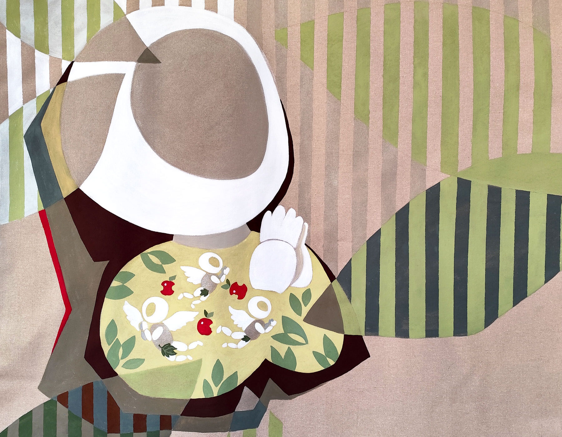 Particolarmente interessante è l’uso che Gudenko fa degli elementi iconografici legati al mito e alla sacralità. Temi classici della storia dell’arte, come la maternità, la preghiera o il riferimento biblico all’Albero della Conoscenza, vengono riappropriati e inseriti in contesti ibridi. Questi dispositivi culturali attraversano le opere per ricordare che il bisogno umano di attribuire un senso alla creazione rimane intatto, anche quando l’atto creativo esce dal dominio della carne per entrare in quello del codice. L’artista sembra chiederci: le nostre macchine pregano? O siamo noi a pregare attraverso di loro?