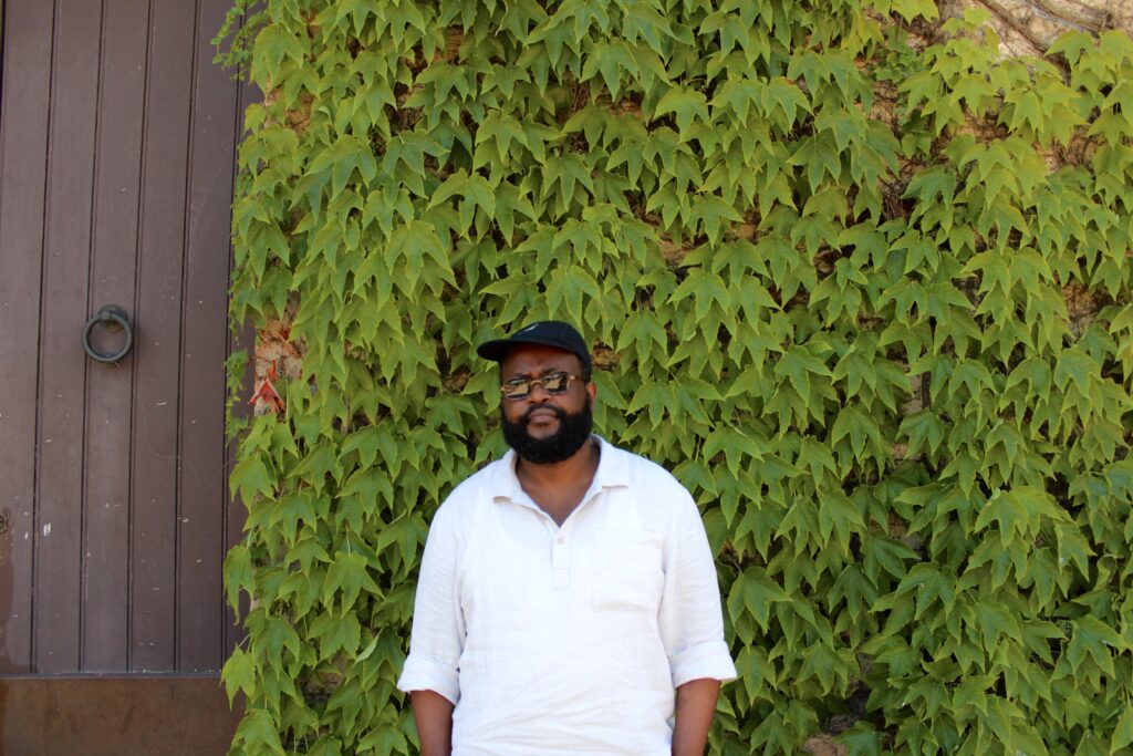 La ricerca visiva di Francis Offman si distingue per una grammatica stilistica cruda ed estremamente materica, capace di eludere le convenzioni accademiche. Nato a Butare, in Ruanda, nel 1987 e successivamente formatosi a Bologna, l’artista porta con sé un bagaglio biografico complesso, che si riversa costantemente nelle sue creazioni senza mai diventare didascalico. Le sue opere si presentano come tele non intelaiate, caratterizzate da contorni frastagliati e irregolari, quasi a suggerire l’impossibilità di contenere o delimitare il peso del vissuto emotivo. In queste fragili architetture compositive, campiture di colore piatto e denso si scontrano e si fondono con umili brandelli di carta recuperata. Incarti per il pane, frammenti di scatole da scarpe e altri materiali di scarto entrano prepotentemente nella composizione non come semplici elementi decorativi, ma come veri e propri lacerti, cicatrici visibili di una storia interrotta.