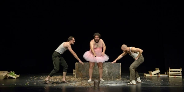 I tre attori condividono la scena in forte armonia. La loro fisicità rimane impressa. E suggerisce caratteri, poi ribaltati dall’andamento delle vicende di cui sono protagonisti. Alberto Gandolfo è il padre; Federico Bizzarri interpreta il figlio maggiore; Damiano Spitaleri nel ruolo del titolo. Il terzetto è abilissimo, anche per come affronta la lingua inventata con cui si esprimono i loro personaggi. Un comprensibile mix di espressioni arcaiche e dialettali, che contribuisce a definire il piccolo mondo – fuori dal tempo e dallo spazio – in cui agiscono.