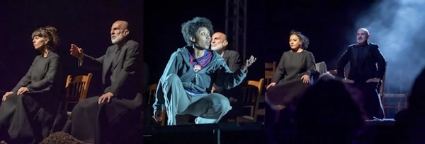 In un’epica dimensione di popolo prende vita il racconto di Fontamara, e modella da subito un racconto corale, una sorta di sinfonia a più voci, in cui il mondo dei cafoni, di tutti quei lavoratori della terra di ieri e di oggi si affolla sul palcoscenico per dare testimonianza di una strage, forse di un genocidio. Come in una sorta di Giudizio Universale, quattro cafoni sono immobili davanti a un cumulo di terra, la stessa che hanno lavorato per una vita o dalla quale forse sono appena risorti, e si stagliano in uno spazio vuoto, attraversato solo da nebbia, che li avvolge e a volte li nasconde. E in questa atmosfera rarefatta, quasi mitica, danno la loro testimonianza ricostruendo le prevaricazioni dei potenti del latifondo Torlonia e le violenze dei fascisti nel paesino di FONTAMARA. Ma non sono soli. A richiamarli in vita, e a dare loro la parola, quella che non hanno mai avuto in vita, è il personaggio che Silone nel romanzo chiama ‘Il Figlio’: è un figlio dei cafoni del Fucino, ma oggi è un ragazzo con la pelle scura che lavora quella stessa terra e approda al palco sceso chissà da quale barcone del mare per rievocare quella strage lontana, ma ancora drammaticamente attuale.