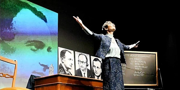 Il lavoro di Arendt, che ha insegnato nelle più prestigiose università americane, viene rappresentato attraverso la performance di Anna Gualdo, che esplora la relazione tra la mancanza di pensiero critico e la responsabilità individuale. Il testo teatrale si concentra in particolare sulla figura di Eichmann, esaminando come la sua incapacità di pensare abbia contribuito alla sua mancanza di percezione delle proprie responsabilità nei crimini nazisti. La rappresentazione si propone di evidenziare i pericoli dell’indifferenza e della passività, temi che risuonano con preoccupante attualità anche nella società contemporanea.