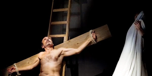 Il regista Gigi Borruso, autore del testo e della regia, sceglie di dare nuova vita a Stracci, il personaggio del film originario, che rappresenta un emarginato del sottoproletariato romano. Nel film di Pasolini, Stracci è arruolato da una troupe cinematografica per interpretare il ruolo del “ladrone buono” e muore sulla croce a causa di un’indigestione, simbolo della sua fame insaziabile. Nella versione teatrale, la narrazione si sviluppa due giorni dopo la scena finale del film, con Stracci ancora sulla croce, ignaro della sua morte.