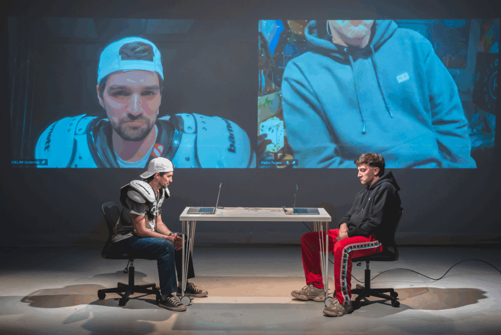 Non è il solito spettacolo sul genere. È un affondo verticale in un territorio spesso inesplorato o trattato con superficialità: l’intimità maschile nell’era della connessione costante. In scena, Pietro Angelini e Pietro Turano danno corpo e voce a una generazione che si muove tra le macerie di una virilità tossica e la ricerca disperata di un contatto autentico, attraversando i “non-luoghi” delle videochat e del cruising virtuale.