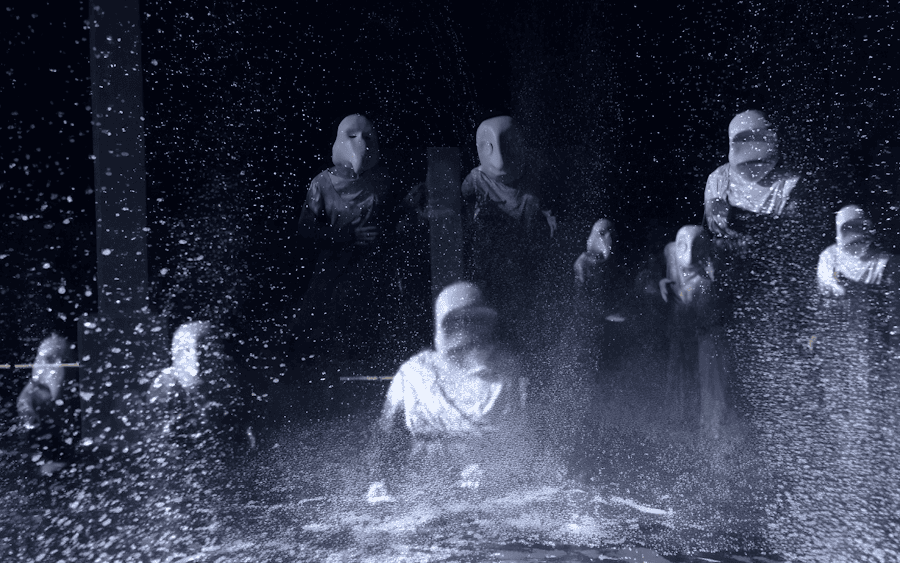 Ad arricchire l’impianto visivo dello spettacolo intervengono le creazioni video di Fabio Massimo Iaquone, figura di spicco della videoarte applicata alla scena. Le proiezioni non si limitano a decorare o illustrare l’azione, ma agiscono come un vero e proprio “controcampo sensibile”. Le immagini visionarie di Iaquone dilatano lo spazio teatrale e frammentano la percezione del tempo, creando un dialogo continuo con i corpi dei performer in scena. In questo contesto, i frammenti del testo originale di Shakespeare appaiono come echi lontani, suggestioni sonore che rafforzano l’esperienza sinestetica.