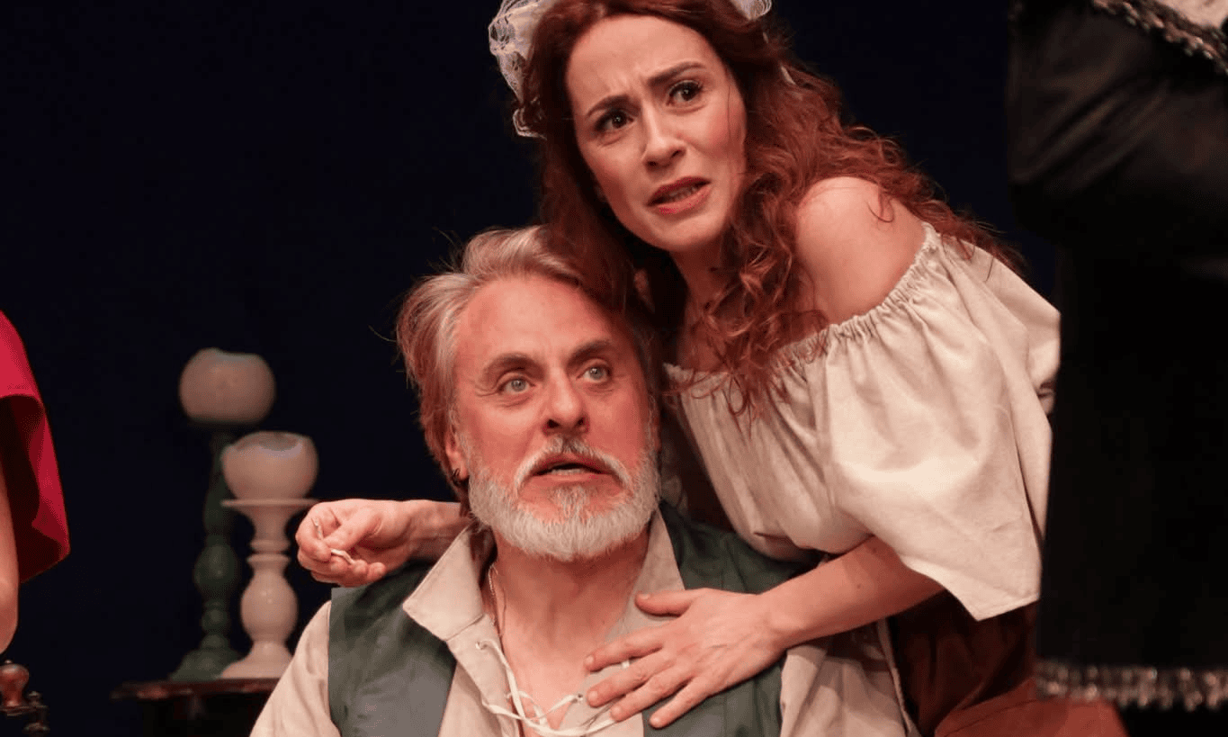 La vera forza di questo allestimento risiede nella scelta radicale di spostare l’obiettivo della telecamera. Se in Shakespeare i nobili sono i protagonisti assoluti e i servi semplici comparse funzionali, qui la piramide sociale viene rovesciata. I riflettori sono puntati sulla brigata di cucina, capitanata dal cuoco Froggy, interpretato da Massimiliano Vado, figura centrale che gestisce non solo i menu reali ma anche gli umori della corte. Attorno a lui gravitano personaggi ricchi di umanità e difetti: la moglie Cathy (Claudia Ferri), la cognata Inge (Veronica Milaneschi) e la sguattera Brecka (Danila Stalteri).