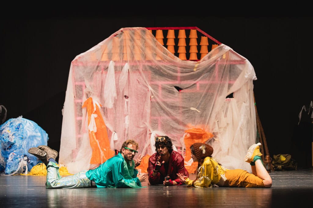 La regia di Giacomo Bogani, su testo di Andrea Falcone, trasforma la canonica sfida tra il lupo e i tre piccoli fratelli in una riflessione sulla contemporaneità. Non si tratta di una semplice riproposizione dei fatti, ma di un vero e proprio ribaltamento semantico. In scena, Giacomo Bogani, Elisa Vitiello e Julio Escamilla non si limitano a recitare un copione, ma danno corpo a una metafora sociale potente: quella di una comunità che deve imparare a resistere alle minacce esterne, non attraverso la solitudine o la costruzione di case di paglia o legno, ma attraverso la solidarietà reciproca.
