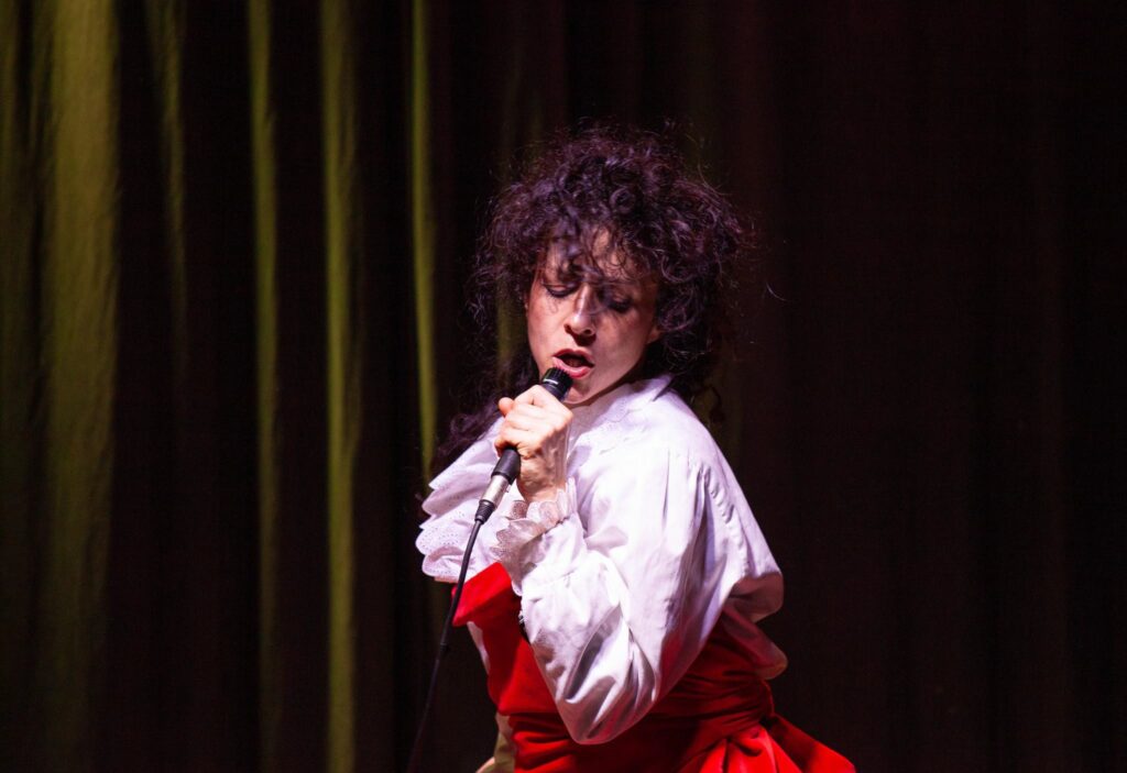 In scena troviamo un’unica interprete, ma molteplici personalità. Attraverso un gioco di trasformismo che coinvolge costumi e registri vocali, prendono vita diversi personaggi che dialogano tra loro e, soprattutto, con il pubblico. Non c’è una quarta parete rigida: la platea è parte integrante del processo di liberazione. Guardare questo spettacolo è paragonabile all’atto di spiare una bambina che gioca libera nella sua camera, capace di creare mondi interi attraverso il proprio vissuto e la propria fantasia, per poi ritrovarsi adulta ma finalmente consapevole.
