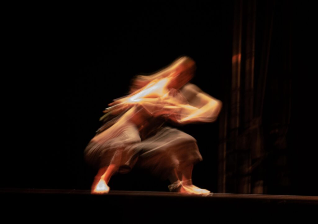Dal punto di vista tematico e drammaturgico, UNUS si addentra in un terreno concettuale tanto antico quanto inesplorato: la ricerca del principio primordiale. Lo spettacolo pone al centro dell’azione scenica il corpo umano inteso come corda vibrante, un elemento fisico il cui movimento vivo e pulsante è in grado di dare voce ai ritmi più profondi e inesprimibili dell’essere. In questa visione, la carne e i muscoli perdono la loro connotazione puramente anatomica per trasformarsi in cassa di risonanza dell’anima, rispondendo a una danza antica e invisibile che muove ogni cosa. È un invito a spogliarsi delle sovrastrutture razionali per tornare a un ascolto pre-verbale, radicato nell’istinto.