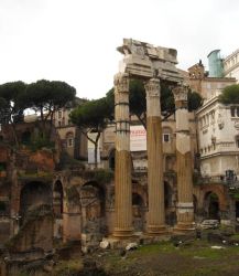Ma cosa resta di questo splendido luogo che oggi potrebbe somigliare molto a una delle grande piazze d’Italia? Resta veramente poco. Dopo gli scavi e le sistemazioni risalenti al 1930, la parte portata alle luce corrisponde più o meno alla metà della superficie originaria. Dall’ingresso che corrisponde al Clivo Argentario, dove è possibile scorgere un doppio pavimento che serviva a isolare dagli ambienti sottostanti, si può vedere anche una scala che scende al livello del portico dove, dopo l’opera di “pulizia” effettuata nell’area compresa tra Campidoglio e Quirinale, si trova la Basilica Argentaria. Sul muro di fondo, tra la doppia fila di colonne che costeggia ad angolo retto la basilica, si trovano incisi numerosi graffiti che in buona parte riproducono versi dell’Eneide e uno la parte iniziale dell’iscrizione sepolcrale di Virgilio.