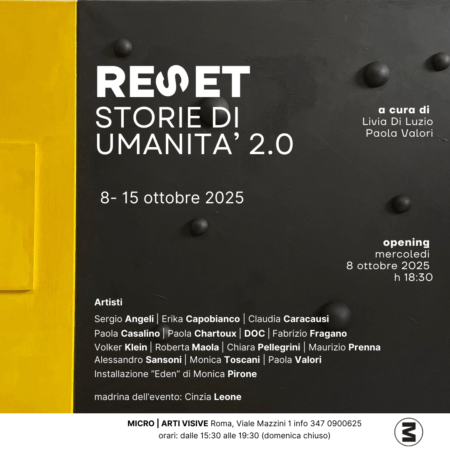 La mostra “RESET. Storie di Umanità 2.0” alla Galleria MICRO di Roma esplora il concetto di resilienza umana. La madrina dell’evento, Cinzia Leone, parteciperà con uno speciale happening. Le opere di quindici artisti offrono un viaggio attraverso pittura, scultura e fotografia. L’inaugurazione è il 8 ottobre e l’ingresso è libero.