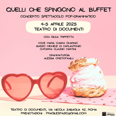 Al Teatro di Documenti, il 4 e 5 aprile va in scena “Quelli che spingono al buffet”, il concerto-spettacolo di Alessia Cristofanilli che intreccia teatro e musica. Un evento che esplora le sfumature dell’amore attraverso brani sudamericani eseguiti da talentuosi artisti. Non perdere questa esperienza musicale coinvolgente e poetica.