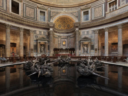La nuova installazione di Helga Vockenhuber al Pantheon, CORONA GLORIAE, riflette sulla Passione di Cristo attraverso un’arte contemporanea simbolica. Composta da sette sculture in bronzo, l’opera si integra nel contesto storico del Pantheon, invitando a una riflessione spirituale nel contesto dell’Anno Giubilare. #HelgaVockenhuber #CoronaGloriae #ArteCristiana #EZrome